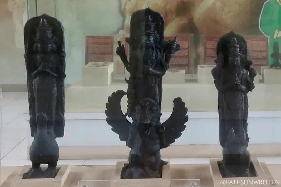 Statues of the Hindu trimurti in the Balaputradeva Museum