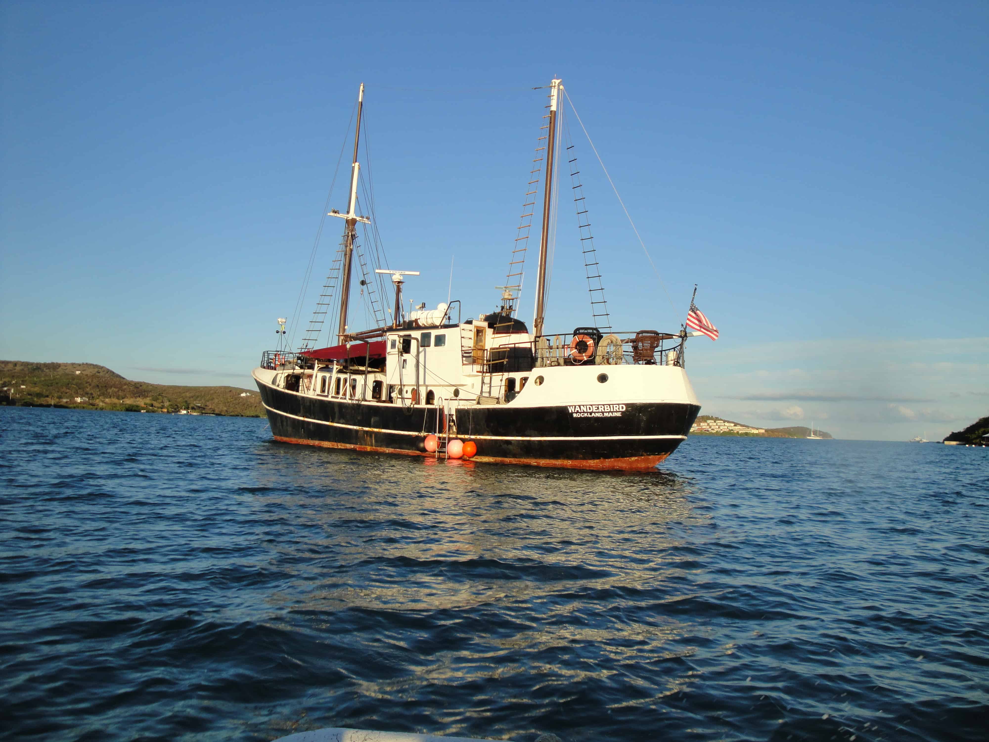 But a few minutes later, the first mate came in, overheard the conversation and introduced himself to me. I went with him to meet the captain as he picked him and another crew member up from the island. They made a final stop at the town’s small grocery store and we headed to the Wanderbird on a skiff.